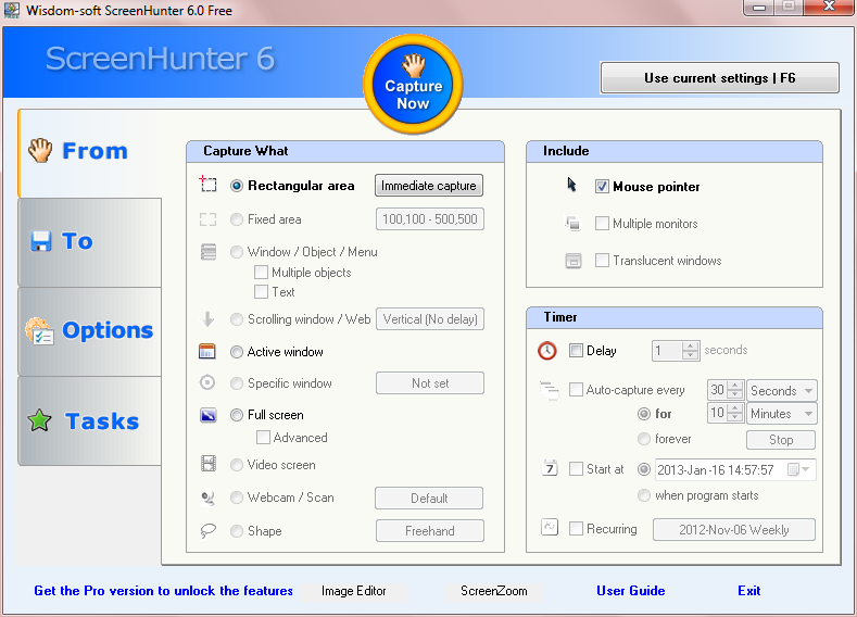 Screen Hunter - merupakan software untuk menangkap/Capture screenshoot layar PC. Filtur yang lumayan lengkap untuk menangkap screenshoot, diantaranya : Rectangular area untuk menangkap screenshoot hanya di area tertentu saja, Active Window untuk menangkap/Capture screenshoot layar yang aktif, Full screen untuk menangkap seluruh layar windows dan hanya dengan menekan tumbol F6.... screenshoot akan langsung di Capture dan disimpan langsong ke folder standar atau lokasi yang anda tentukan sendiri.