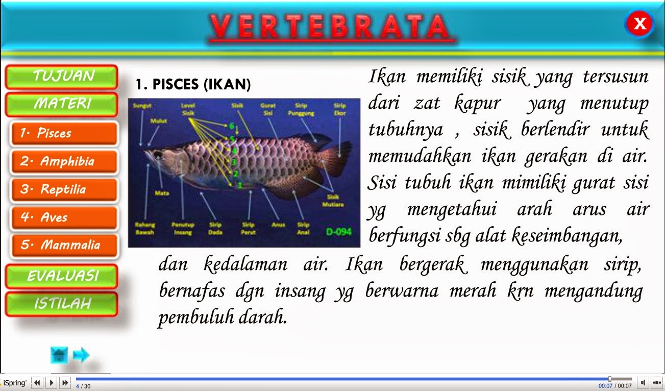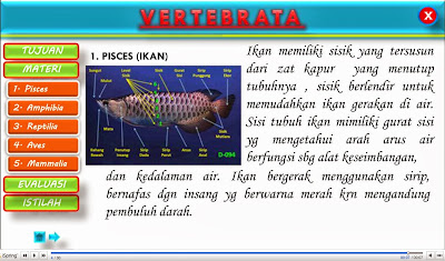 Udah lama ngak posting,, karena terlalu sibuk dan kadang terlalu malas untuk membuka blog,, pada kesempatan ini secara kebetulan saya ingin berbagi file swf yang berjudul Vertebrata yang saya buat dari hasil convert PowerPoint. File swf ini memiliki link yang aktif yang bisa mengarahkan kemana materi yang akan kita klik untuk kita ajarkan pada siswa, File Swf ini dapat dibuka dengan